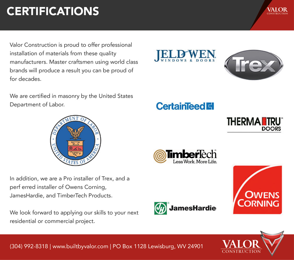 Valor construction is a family based business dedicated to the satisfaction of it's clients. The key factors in growth and stability are the determination to produce an exceptional finished product and to gain relationships with quality craftsmanship. Our success is measured one project at a time. After the completion of each product, we understand there must remain a satisfied client, otherwise, we have failed our mission to provide superior construction services.